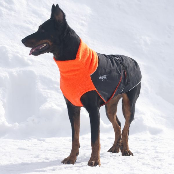 Der Great White North ™ Mantel ist auf maximale Wärme, Haltbarkeit und Sicherheit ausgelegt. Alle Mäntel von Chilly Dogs sind aus Kanada und haben das Design „Easy On, Easy Off“. Der Hundemantel wird einfach über den Kopf des Hundes geschoben, dann wird die Y-förmige Bauchplatte zwischen den Vorderbeinen nach unten und hinten gezogen und dann über den Rücken des Hundes gezogen, wo die Schnallen befestigt und das Gurtband angepasst werden.